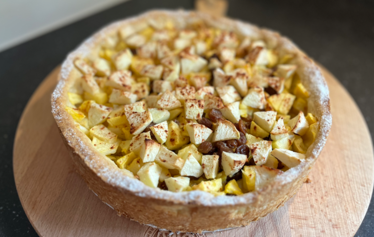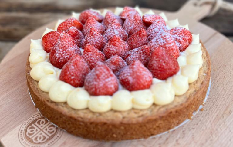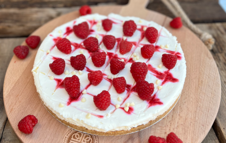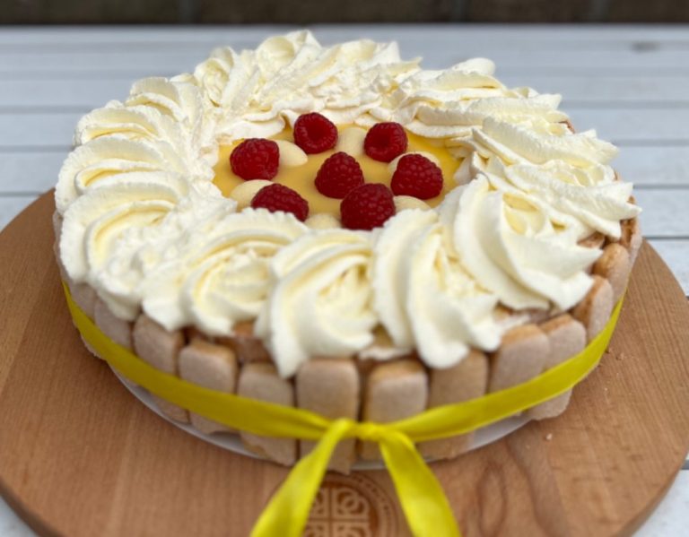 Lentetaart met witte chocolade room, frambozen en lemon curd